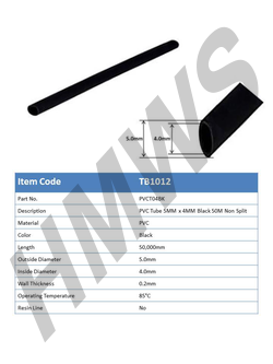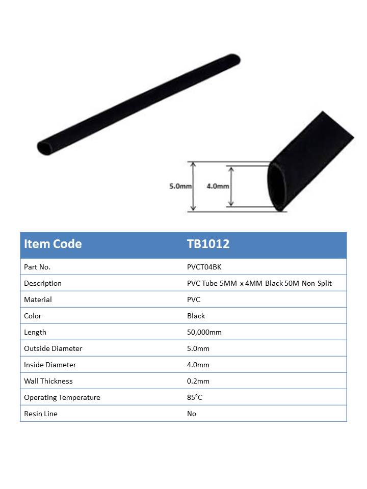 TB1012 - PVC Tube 5mm x 4mm Black (Non Slit)