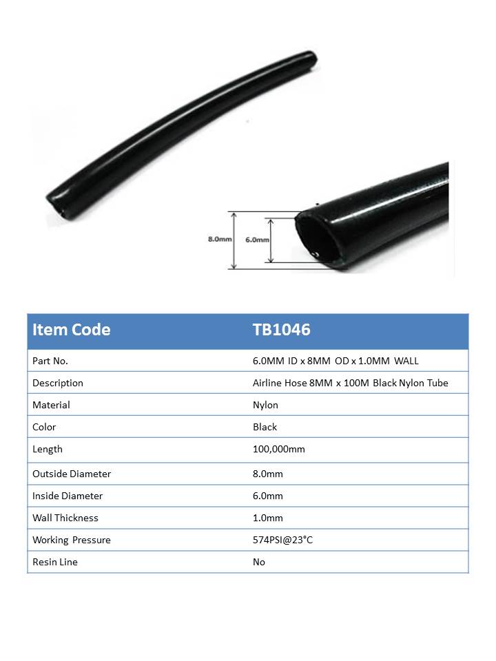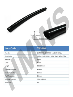 TB1046 - Airline Hose 8mm x 6mm Black Nylon