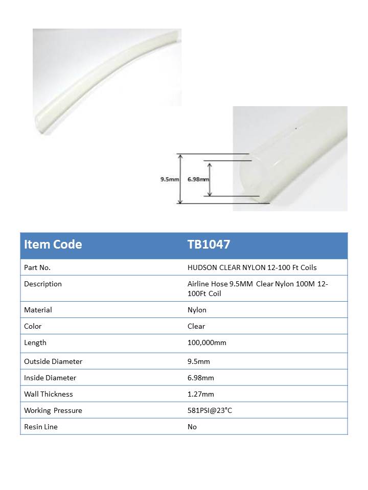 TB1047-C - Airline Hose 9.5mm x 6.98mm Clear Nylon