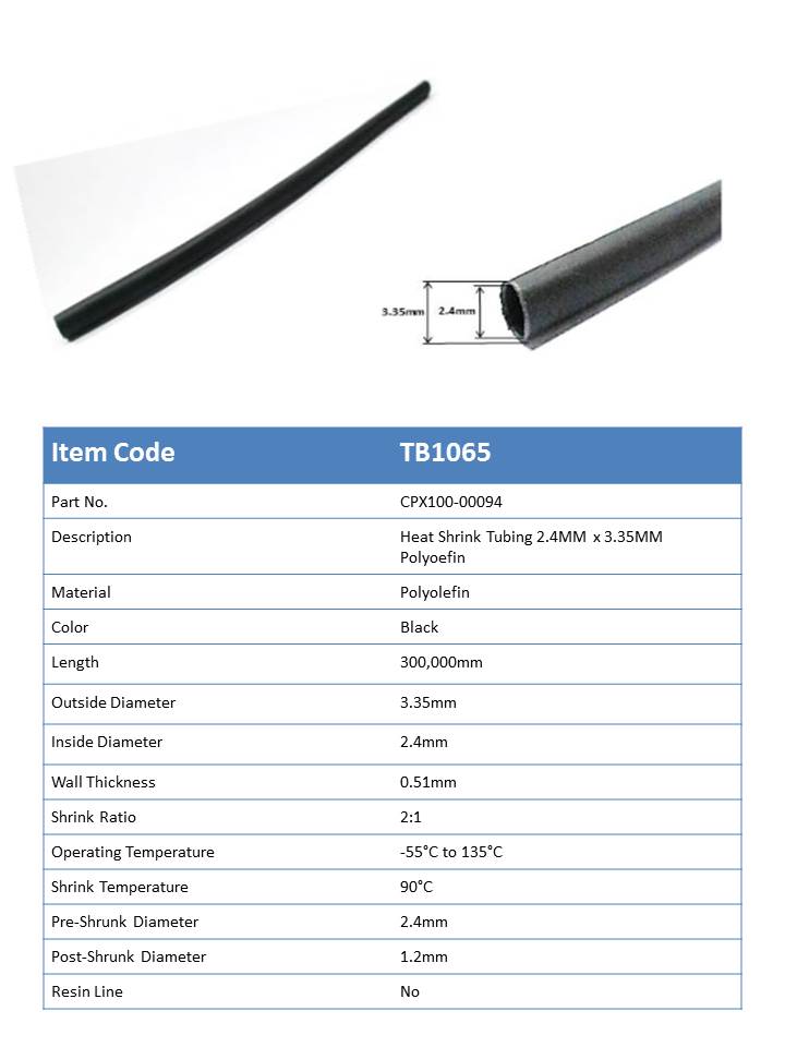 TB1065 - HEAT SHRINK TUBING 2.4 mm x 3.35 mm