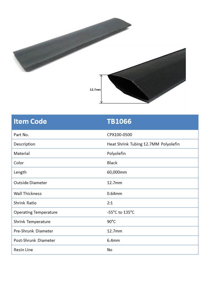 TB1066 - Heat Shrink Tubing 12.7mm x 6.4mm Black Polyolefin