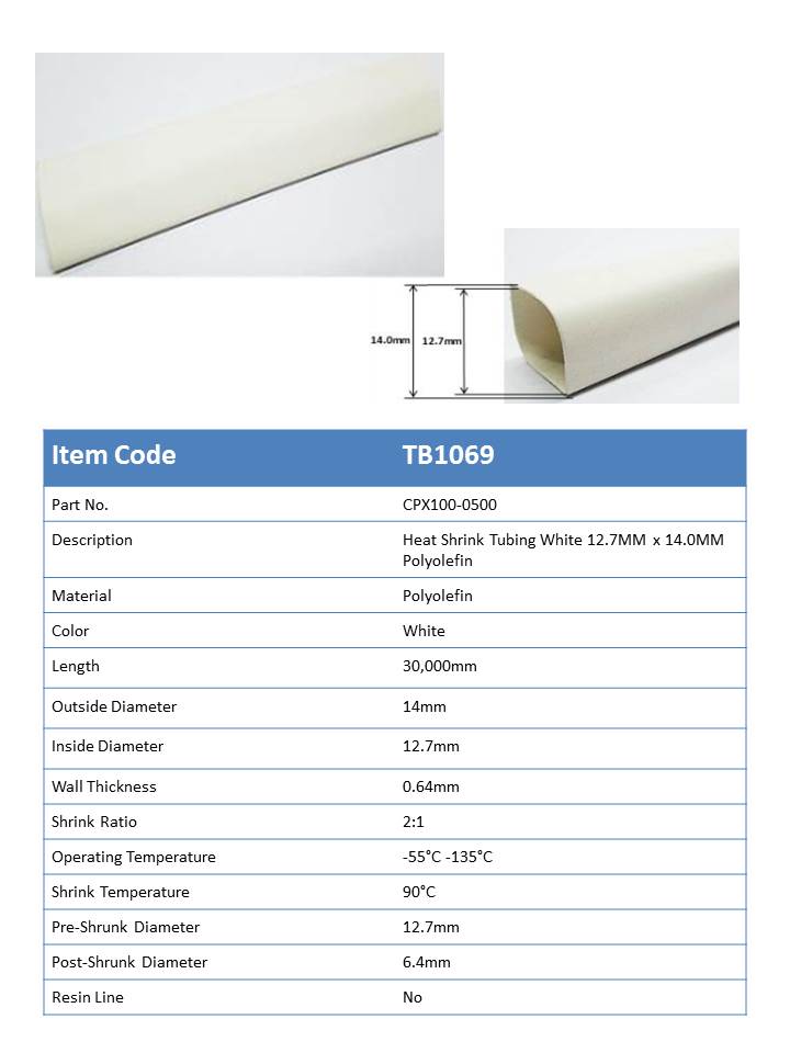 TB1069 - Heat Shrink Tubing 12.7mm x 6.4mm White Polyolefin