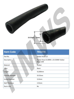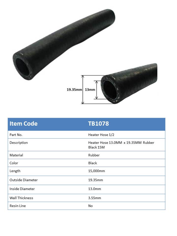 TB1078 - Heater Hose 19.4mm x 13.0mm Black Rubber
