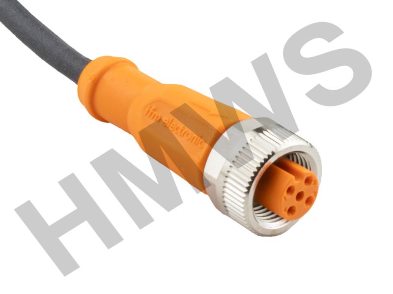 IFM EFECTOR CORDSET, M12 FEMALE RIGHT ANGLE, 5 PIN/4WIRE, 2M, PUR, BLACK