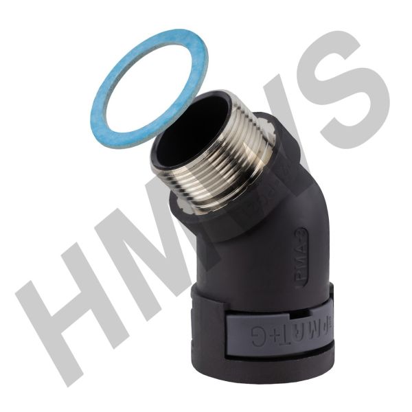 CA3521 - COND FITTING 45D PG21 NW23 PA6/BR BLK