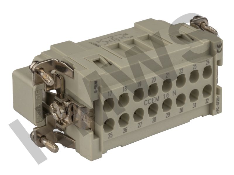 CH4044 - male insert, 16 poles + PE, No. 17 - 32, crimp connections, 16A, 500V, 6kV, 3, size