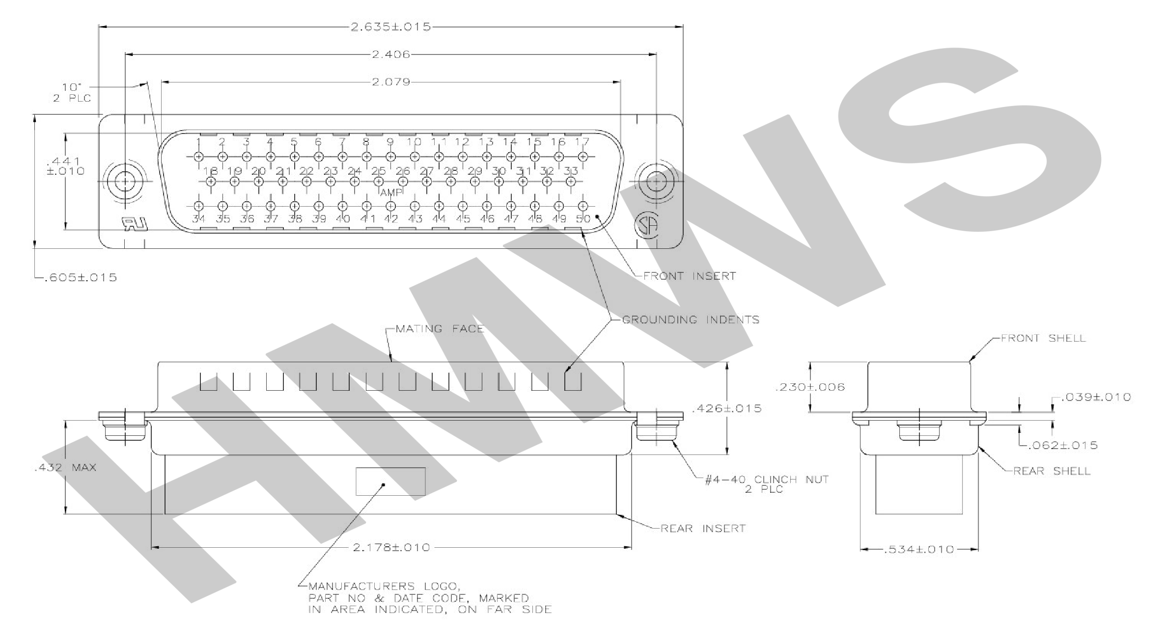 CH4881 - CONNECTOR MALE 50 WAY UNSEALED