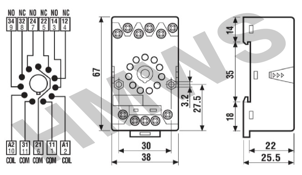 RE1252 - DIN-RAIL/PANEL MOUNT SCREW TERMINAL BOX CLAMP SOCKET FOR 60.13 RELAY BLUE