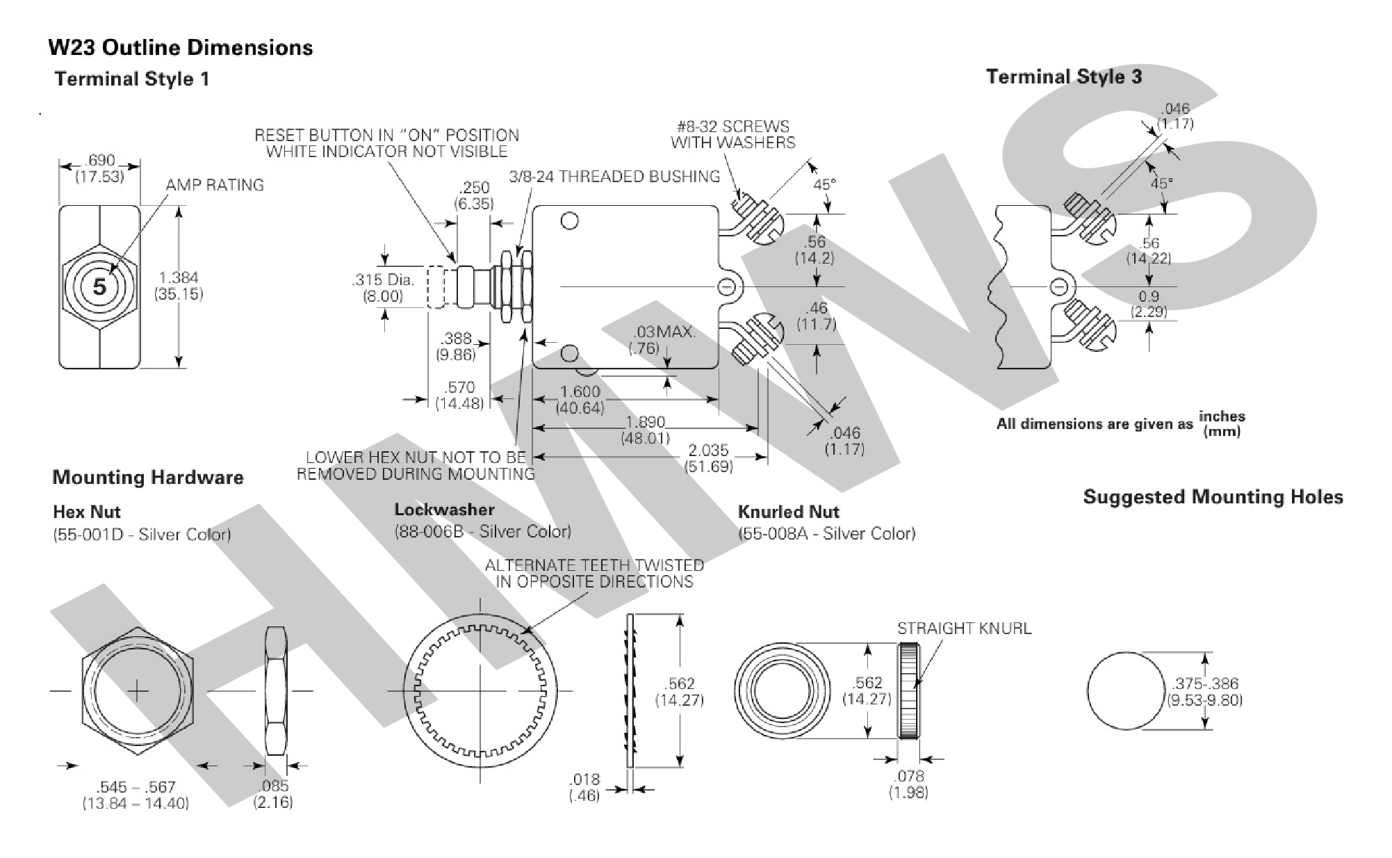 Type III High Amp Switchable, Waterproof, Flush-Mount Manual Reset Circuit Breakers with SEMS Nuts Installed