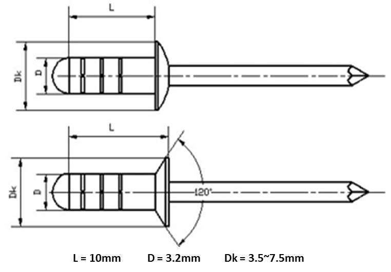 HW1901 - Aluminum - Steel Multi Grip Rivet 3.2x10mm