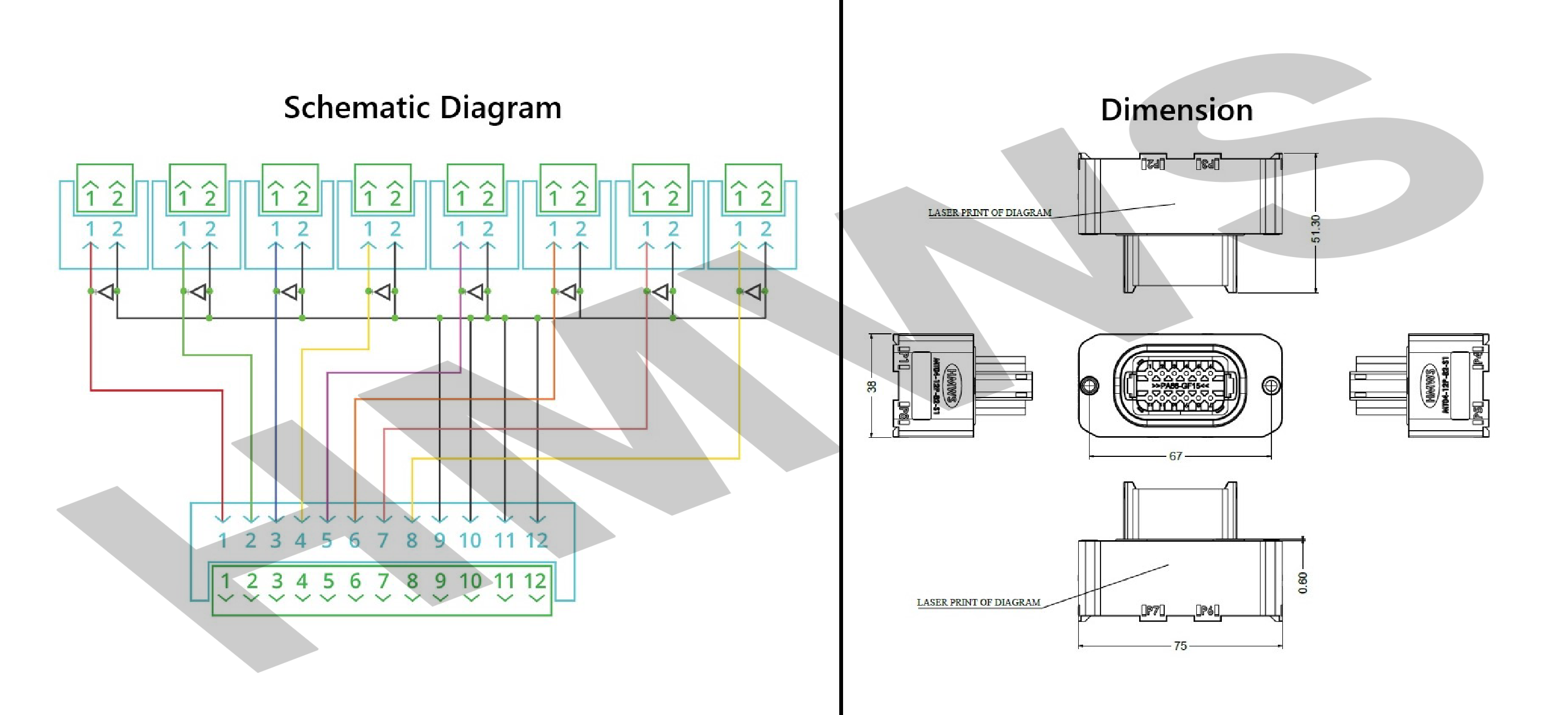12 Way MTM Bussed Receptacle Connector